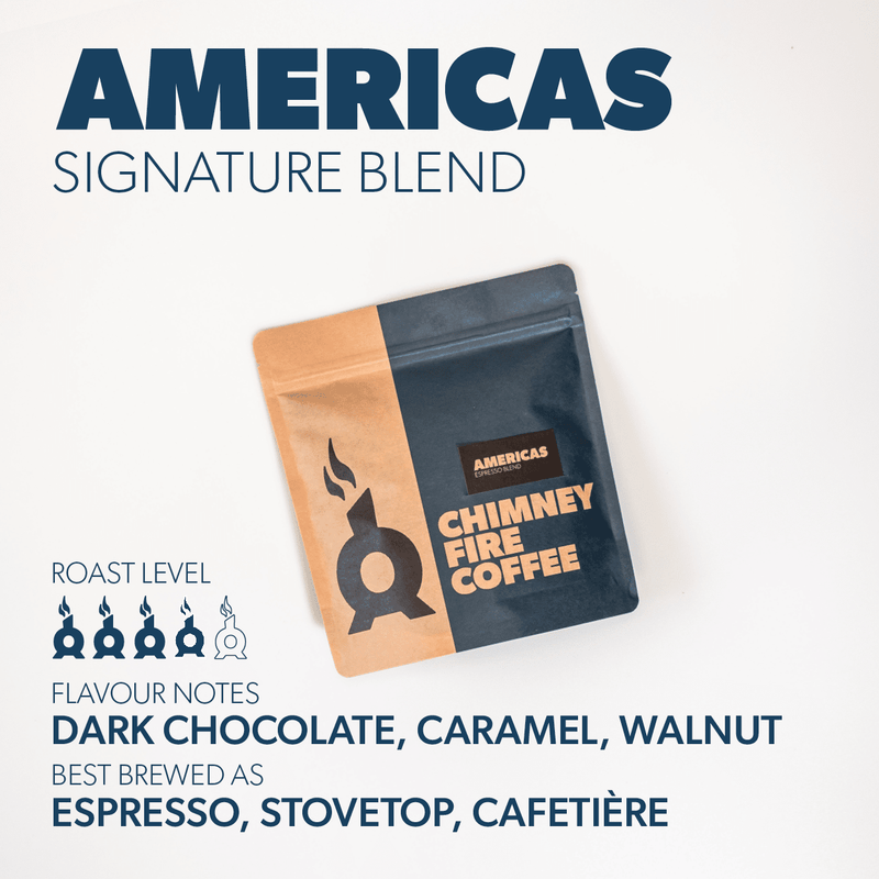 Our Americas Signature Blend is our flagship coffee — the one that best represents Chimney Fire. Carefully selected coffees from Latin America are roasted to a rich, medium-dark profile, creating a full-bodied cup with notes of dark chocolate, caramel, and walnut. Equally at home in a cafetière as it is in a home espresso machine, it’s the perfect choice for your morning flat white or cappuccino.